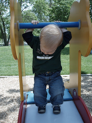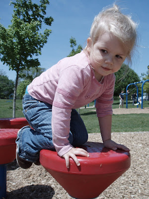 We were at a playground at a fair this weekend. I should have gotten a few pics of my daughter… they would have been pretty funny. She was trying desperately to play, but there were tons of big kids (too big for this playground, really) running around wild. My daughter kind of stood there, frozen, and watched in amazement as the big kids just took over.