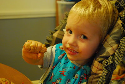 He refuses peanut butter and jelly sandwiches because he says the jelly is too messy. Yet give him a plate of apples and peanut butter and this is what happens…
