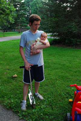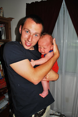 Bummin’ with Daddy on the couch. That was actually from the fourth of July, or so the date in Picasa tells me. So that picture is over a month old. He’s a lot bigger now.